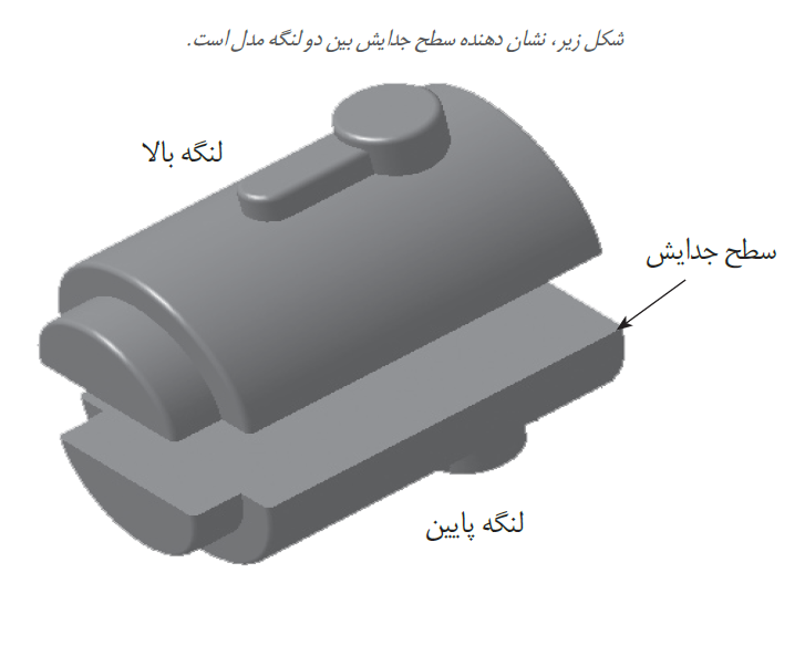 اولین مرحله برای طراحی مدل و یا قالب، تعیین سطح جدایش آنها است سطح جدایش مشخص کننده مرز و سمت خروج مدل و یا قطعه از قالب میباشد برای مثال در نظر بگیرید که جسم دایره شکلی را داخل مقداری گچ فرو برده اید و پس از سخت شدن گچ آن را بیرون میآوردید اگرجسم بیشتر از خط مرکز خود داخل گچ فرو رفته باشد، در زمان خارج شدن باعث تخریب قالب گچی میشود پس با این حساب مرکز دایره محل مناسب برای سطح جدایش این جسم است . به همین ترتیب مدل باید به گونهایی طراحی شود که امکان خروج آن از قالب ماسه ای و یا قالب رزینی فراهم گردد در نتیجه محل جدا شدن دو لنگه قالب از یکدیگر، در نقطهای خواهد بود که قطعه به راحتی از آن بیرون بیاید .